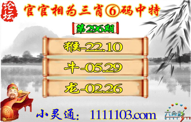 296期:✨官官相为✨【三肖6码】【,牛,龙|22,10,05,29,02,26】开:猴22