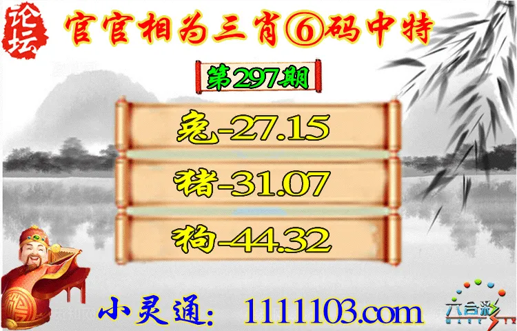 297期:✨官官相为✨【三肖6码】【兔,猪,|27,15,31,07,44,32】开:狗44