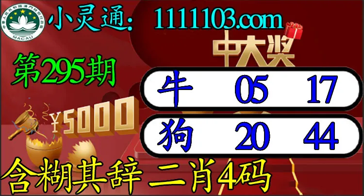 295期:✨含糊其辞✨【二肖4码】【,狗|05,17,20,44】开:牛05